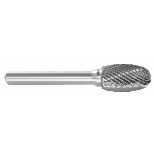 SE oval burs have an egg-shaped cutting head for deburring and finishing contoured surfaces and long rounded holes and slots. These carbide burs remove sharp edges, unwanted projections, and excess material from machined workpieces.